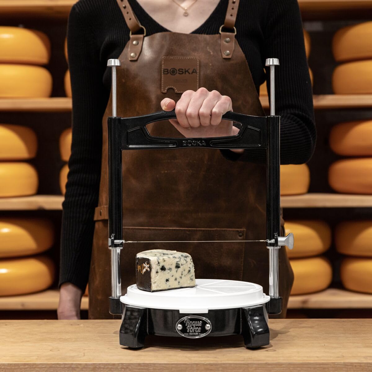 - STYLISH COUNTERTOP SHOWPIECE: Crafted from high-quality cast aluminum, the RoqueForce Black Cheese Cutter is as stylish as it is functional. Part of the exclusive 1896 collection, it’s available in black and red, making it a sleek and professional addition to any cheese shop or kitchen.